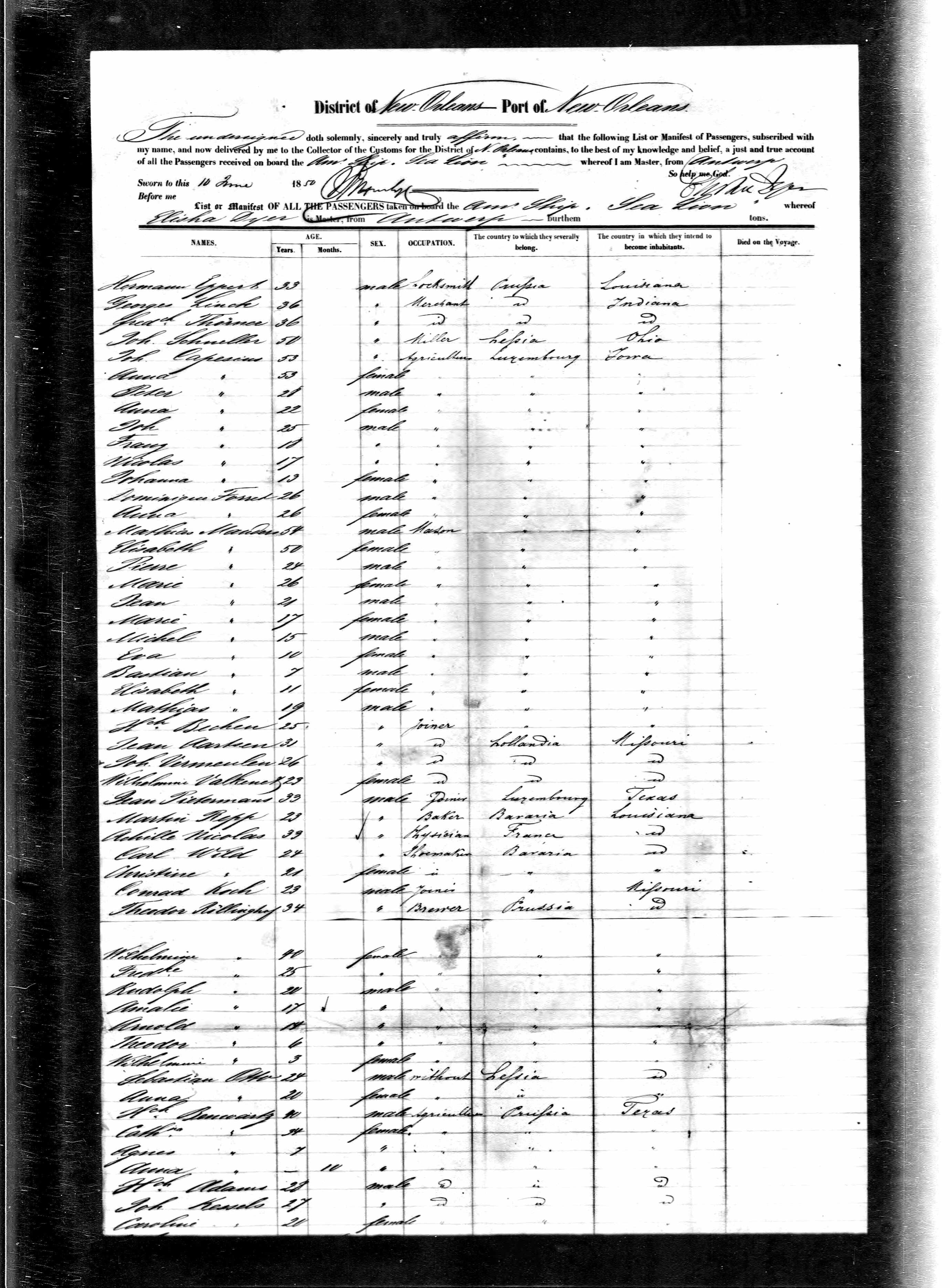 | Arrival | 10 Jun 1850 (Age 11 years) Publication: Name: Online publication - Provo, UT, USA: Ancestry.com Operations,Inc., 2006.Original data - Passenger Lists of Vessels Arriving at New Orleans, Louisiana, 1820-1902. Microfilm publication M259. 93 rolls. Record Group 36.Passenger Lists of Vessels Arriving at; Text: Birth date: abt 1840