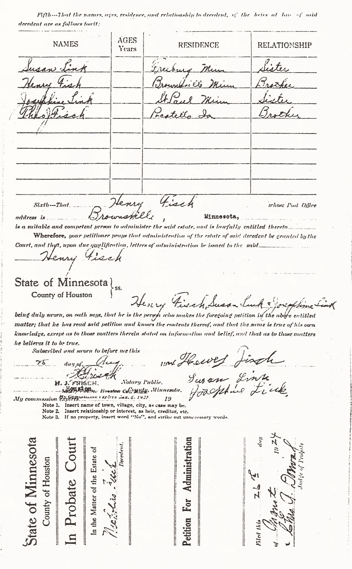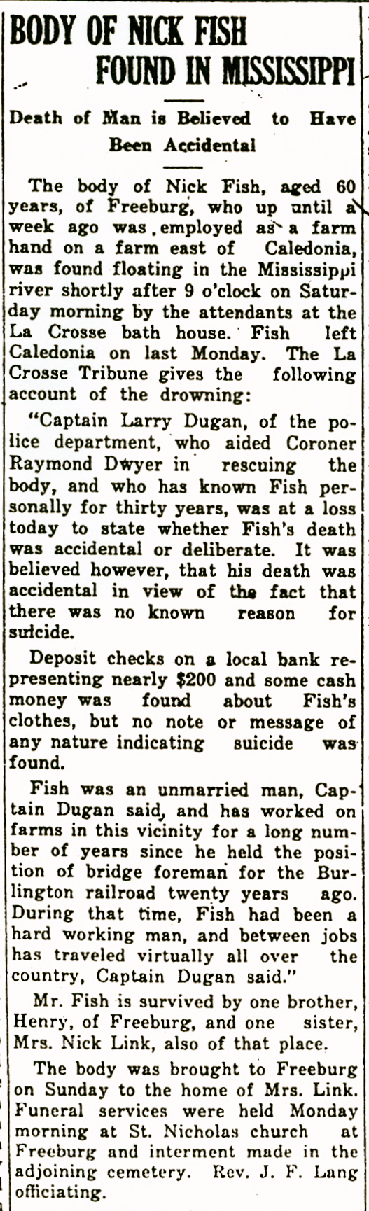 Frank Fisch Birth: 01 Jan 1872 48 34 — Crooked Creek, Houston, Minnesota, United States |