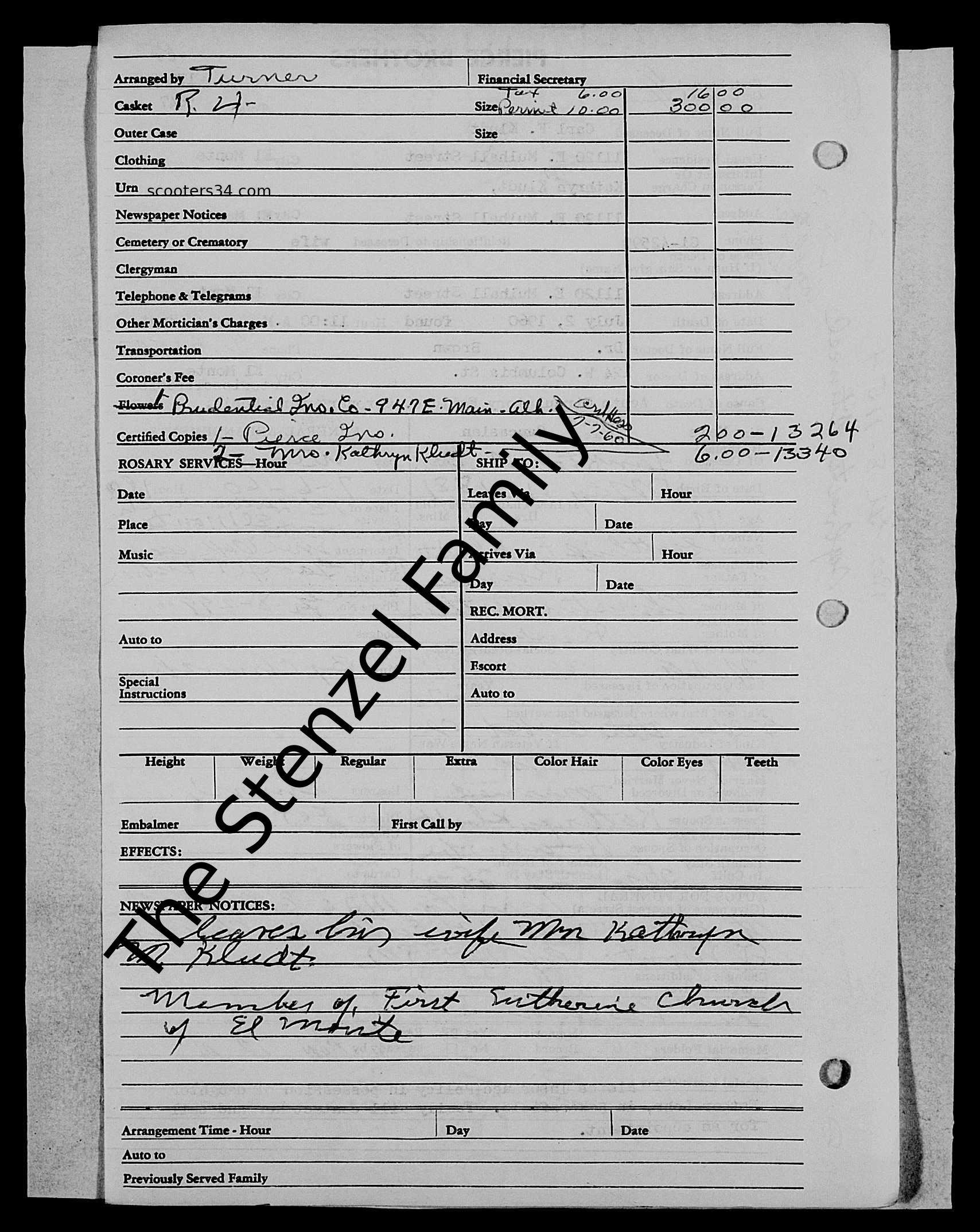 | Burial | Funeral Home Record |