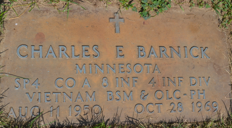 | Death of a son | Spec Charles Edward Barnick 28 Oct 1969 (Age 44 years) Cause: Killed In Action in the Vietnam War. |