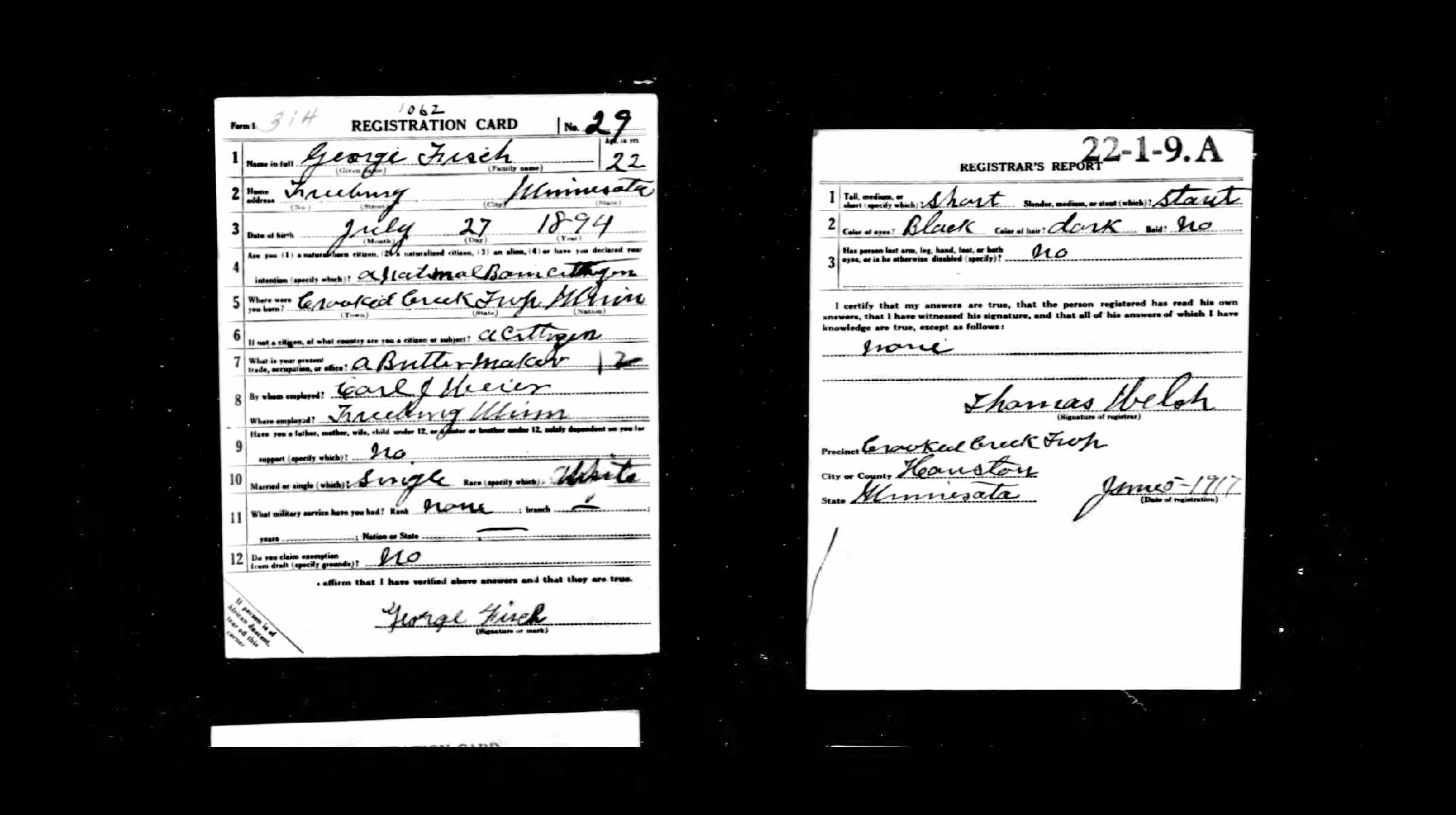 Death place: Caledonia, Houston, Minnesota, United States of America Publication: Name: Online publication - Provo, UT, USA: Ancestry.com OperationsInc, 2005.Original data - United States, Selective Service System. World War I Selective Service System Draft Registration Cards, 1917-1918. Washington, D.C.: National Archives and Records Admini; Citation details: Registration Location: Houston County, Minnesota; Roll: 1675470; DraftBoard: 0. Text: Birth date: 30 Apr 1896